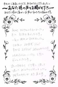 当サロンのサービスを受けていただいたお客様より、たくさんの温かいお声をいただいております。